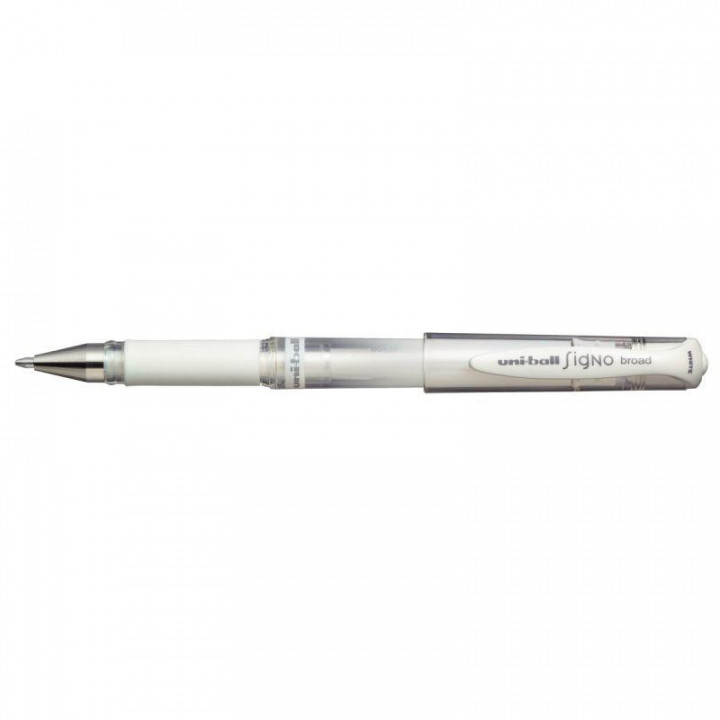 Roller Signo Broad blanc. Stylo à encre gel à pigmentation dense et lumineuse, écriture fluide et ultra douce. Grip en caoutchouc pour une prise en main confortablelargeur du trait : 1 mm.