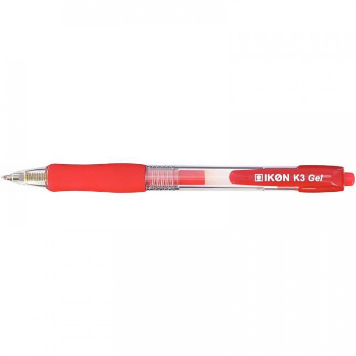 Stylo gel K3 rouge. Ecriture moyenne, pointe 0.7mm. Doté d'un grip confort. Encre cap-off.