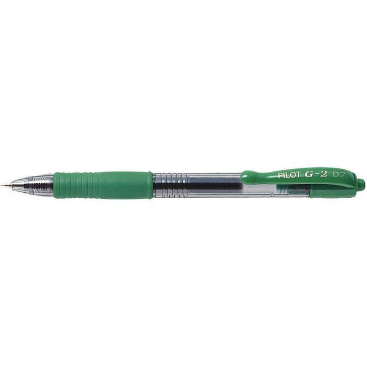 Roller gel G2 vert. Ecriture moyenne, pointe 0.7 mm. Tracé 0.4 mm. Bille en carbure de tungstène, encre gel. Doté d'un grip caoutchouté très confortable et d'un système de contrôle de débit de l'encre. Corps transparent fumé laissant voir le niveau d'encre. Rechargeable.