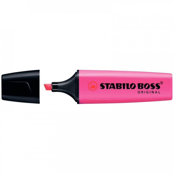 Surligneur Boss lilas. Surligneur à encre universelle à base d'eau. Résistance intense à la lumière sur tous les papiers, fax, autocopiant. Tracé de 2 à 5 mm pointe biseautée.