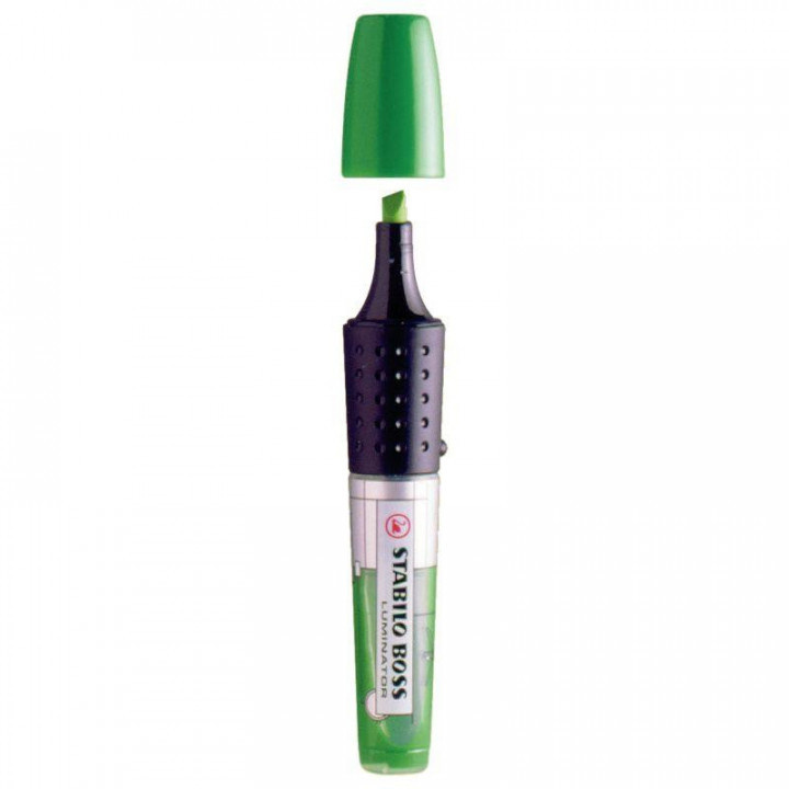 Surligneur Luminator vert. Grande capacité d'encre Pointe extra résistante 500 m de surlignage. Pointe biseautée, tracé de 2 à 5 mm. Encre liquide fluorescente à niveau visible.