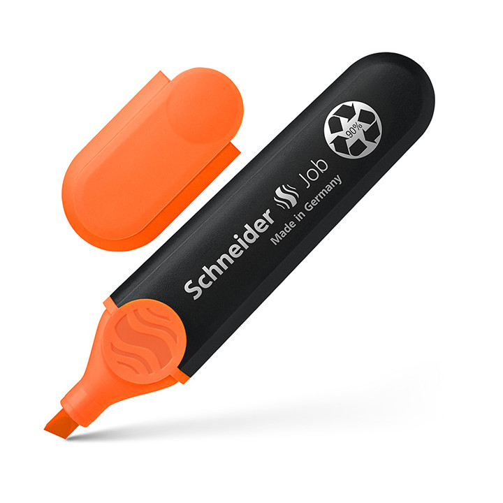 Surligneur Job orange. Pointe biseautée pour trait d'écriture de 1 à 5mm. Encre universelle pour papier normal, photocopie et fax.