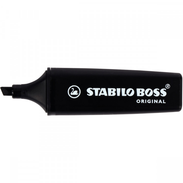 Surligneur Boss nature noir. Surligneur à encre universelle à base d'eau. Résistance intense à la lumière sur tous les papiers, fax, autocopiant. Peut rester ouvert 4 heures sans sécher. Tracé de 2 à 5 mm pointe biseautée.