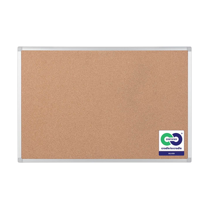 Tableau liège Earth 120x90cm cadre alu. Montage vertical ou horizontal. Affichage par punaises ou épingles. Cadre mince en aluminium. Visserie fournie. Certification Cradle to Cradle Silver. Garantie 25 ans.