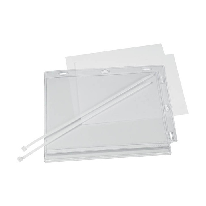 Lot de 5 pochettes affiche avec serre-câble A5. La pochette d'affichage est idéale pour l'affichage d'informations en extérieur et dans les zones intérieures humides telles que par ex. les jardineries, les saunas, les piscines, où les affiches peuvent être en contact avec l'eau - Très bonne protection des affichettes grâce à une fermeture étanche à pression, en particulier en cas de pluie, d’hygrométrie élevée, d’humidité et de salissures - Fixation de la pochette transparente à l'aide de deux serre-câble fournis dans les trous ronds ou européens prévus à cet effet - Testée selon la norme IPX5 (protection contre les jets d’eau provenant de toutes les directions) - Pochette transparente résistante aux UV, aux intempéries, aux rayures et traitée anti-reflet - Utilisation possible en format portrait ou paysage - Simplicité et rapidité de remplacement des inserts - Capacité de remplissage de 2 feuilles de 160 g/m², fournies - Nombreux modèles d'impression disponibles sur www.duraprint.fr - Convient aussi pour les formats US tabloids