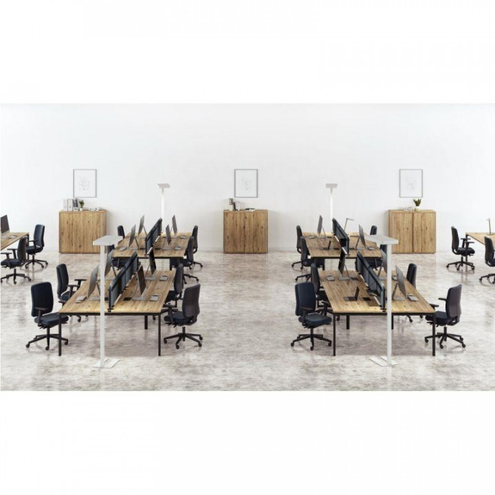 Table de bureau sur structure partagée plateaux fixes départ P165xL120cm 4pieds plateau chêne brunswick/piètement anthracite. Plateau mélamine, ép. 25mm. Chants ABS ép. 2mm. Obturateurs (option). Traverse en tube métallique 50x20mm (finition gris aluminium). Piètements arche en tube métallique 60x30mm équipés d'embouts noir et de vérins de réglage. Garantie 5 ans.