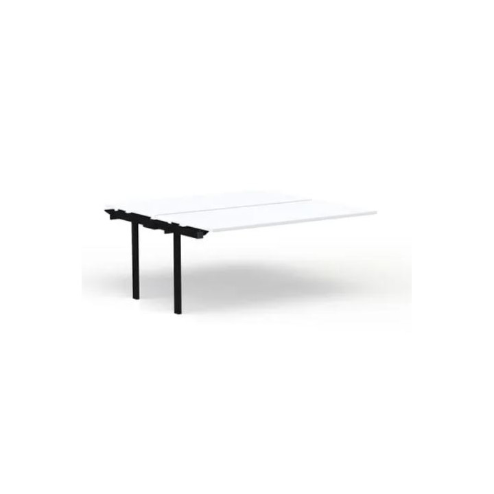 Table de bureau sur structure partagée plateaux fixes suivant P80xL180cm 2 pieds plateau blanc/piètement noir. Plateau mélamine, ép. 25mm. Chants ABS ép. 2mm. Obturateurs (option). Traverse en tube métallique 50x20mm (finition gris aluminium). Piètements arche en tube métallique 60x30mm équipés d'embouts noir et de vérins de réglage. Garantie 5 ans.