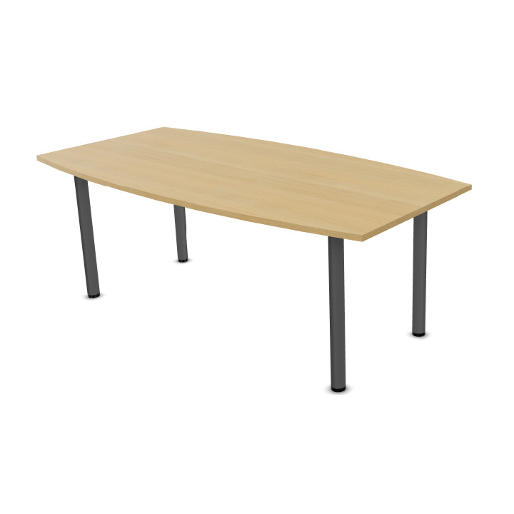 Table tonneau L200xP100cm 4 pieds chêne clair/anthracite. Plateau mélamine ép. 25mm. 4 pieds tube ronds Ø80mm. Garantie 5 ans.