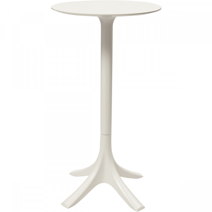 Table haute Beez blanc. En polypropylène traité anti UV. Label BSCI, conforme aux normes EN581-2 et EN16139. Garantie 3 ans.