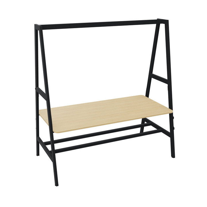 Table départ L180xP90cm Nomad plateau chêne naturel/structure noir. Modulaire dynamique. Plan de travail en panneau de particules mélaminé. Epaisseur 19mm, Ajustable en hauteur en 2 positions grâce à un mécanisme sous le plateau et des rails de guidage insérés dans les piètements: assis (H73,5cm) ou debout (H104,5cm). 2 faces décor antireflets. Chants plats ABS 2mm assortis. Coins arrondis. Classement au feu M3 selon norme NF EN 13501-1. Structure métallique, peinture époxy. Piètement arche type "A", section 60x30mm. Double repose-pieds section 40x40mm. Garantie 5 ans.
