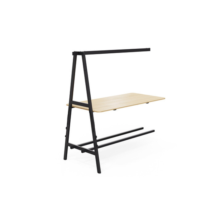 Table suivante L180xP90cm Nomad plateau chêne naturel/structure noir. Ne peut être achetée seule: table départ obligatoire pour débuter la configuration. Modulaire dynamique. Plan de travail en panneau de particules mélaminé. Epaisseur 19mm, Ajustable en hauteur en 2 positions grâce à un mécanisme sous le plateau et des rails de guidage insérés dans les piètements: assis (H73,5cm) ou debout (H104,5cm). 2 faces décor antireflets. Chants plats ABS 2mm assortis. Coins arrondis. Classement au feu M3 selon norme NF EN 13501-1. Structure métallique, peinture époxy. Piètement arche type "A", section 60x30mm. Double repose-pieds section 40x40mm. Garantie 5 ans.