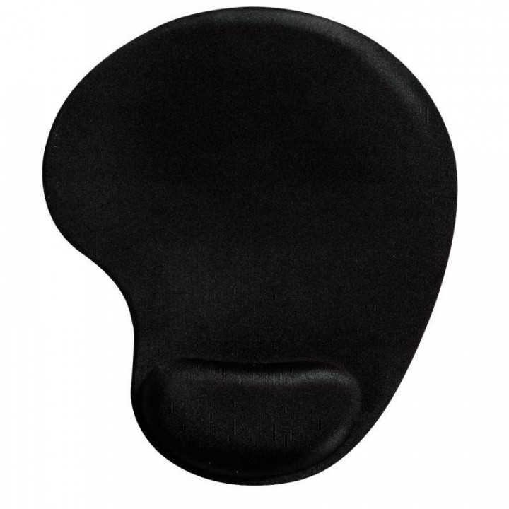 Tapis souris avec repose-poignet gel. Forme ergonomique, antidérapant. Dim: 20 x 23 cm.