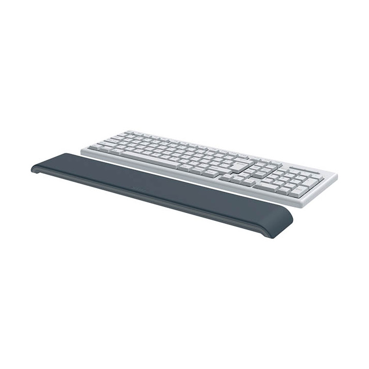 Repose-poignet pour clavier réglable Ergo gris foncé. Conçu pour s’adapter à toute la longueur de votre clavier, ce repose-poignets vous permet un soutien optimal en position assise ou debout. Vous pouvez ajuster sa hauteur facilement grâce à deux réglages (15 mm et 22 mm) en le retournant, garantissant ainsi un alignement correct du poignet et minimisant les risques de microtraumatismes lors d'une utilisation prolongée. Le rembourrage en mousse douce assure un confort supplémentaire. De plus, fabriqué à partir de matériaux non toxiques et lavables, il allie confort, durabilité et hygiène. Conformément à la norme DIN 26800 EN ISO 15537, ce repose-poignets a été testé et recommandé par l'Institut Allemand IGR. Dimensions : 43,7 x 7,1 x 2,2 cm. Garantie 2 ans.