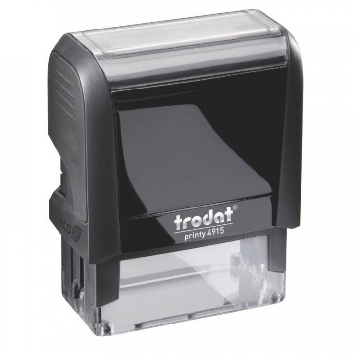 Tampon à encrage automatique Printy 4915, texte jusqu'à 6 lignes, plaque format 70 x 25 mm. Timbre à encrage automatique, livré avec plaque neutre pour personnalisation (texte, logo, cadre ou tableau) sur demande. Encrage noir par cassette interchangeable (autres coloris sur demande). Pour identification sur chèque, lettres, colis, etc.. .