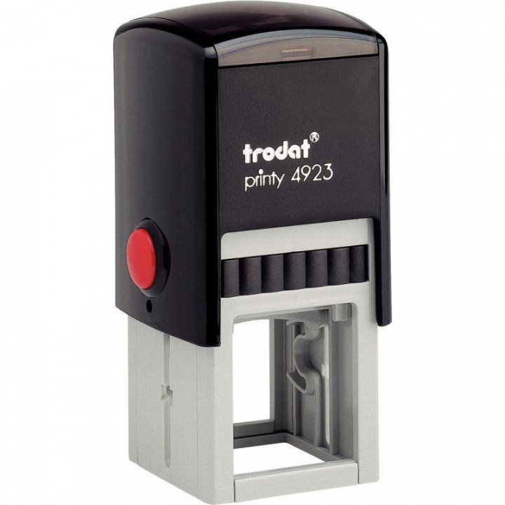 Tampon à encrage automatique Printy 4923, texte jusqu'à 6 lignes à personnaliser, plaque format 30 x 30 mm. Timbre à encrage automatique, livré avec plaque neutre pour personnalisation (texte, logo, cadre ou tableau) sur demande. Encrage noir par cassette interchangeable (autres coloris sur demande). Monture plastique. Cassette d'encrage en plastique et mousse encrée. Encre à base d'eau, non toxique. Disponible en 5 couleurs d’appareils : Noir, Vert Menthe, Bleu, Rouge, et Jaune.