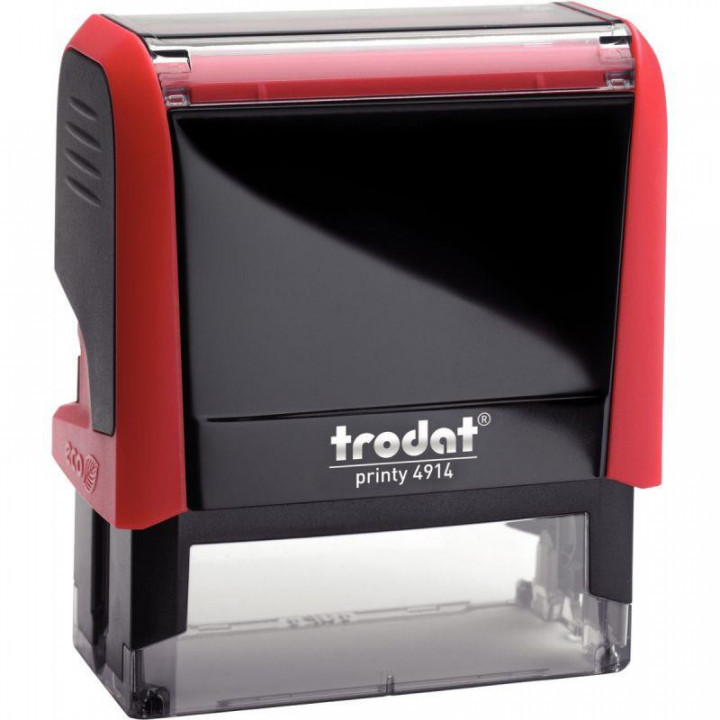 Tampon à encrage automatique Printy 4914, texte jusqu'à 6 lignes à personnaliser, plaque format 70 x 25 mm. Timbre à encrage automatique, livré avec plaque neutre pour personnalisation (texte, logo, cadre ou tableau) sur demande. Encrage noir par cassette interchangeable (autres coloris sur demande). Disponible en 10 couleurs d’appareils : Noir, Gris, Vert, Bleu, Rouge, Blanc, Fuchsia, Orange, Taupe, Turquoise. Fabriqué jusqu'à 65% de plastique recyclé.