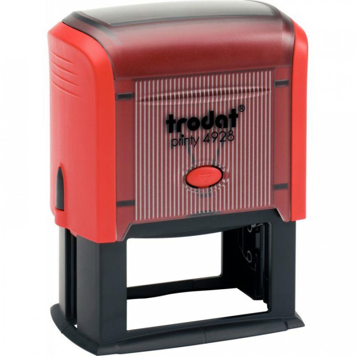 Tampon à encrage automatique Printy 4928, texte jusqu'à 7 lignes, plaque format 60 x 33 mm. Timbre à encrage automatique, livré avec plaque neutre pour personnalisation (texte, logo, cadre ou tableau) sur demande. Encrage noir par cassette interchangeable (autres coloris sur demande). Disponible en 5 couleurs d’appareils : Rouge, Gris, Bleu, Vert Menthe et Mangue. Fabriqué à partir de plastique recyclé. Empreinte carbone réduite.