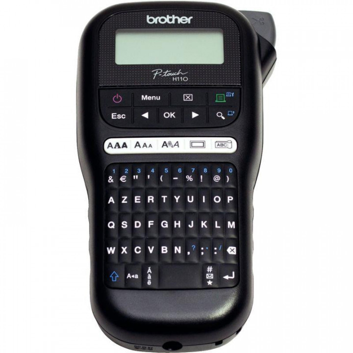 Titreuse Brother PT-H110. Rubans TZe : 3,5 - 6 - 9 - 12 mm. Imprime jusqu'à 2 lignes et '' miroir "ou "verticale ". Garantie 2 ans.