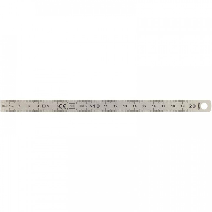 Reglet inox 2 faces 20 cm. Inox flexible. 2 faces graduées : 1 face en mm, 1 face en 1/2mm.