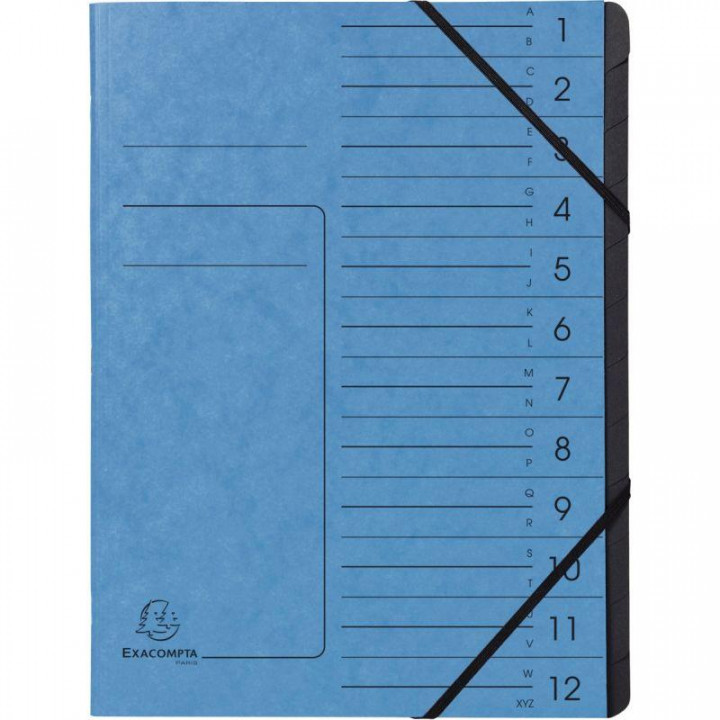 Trieur 12 compartiments, carte CLEAN'SAFE, bleu. La gamme de classement CLEAN'SAFE intègre la technologie antimicrobienne qui protège et stoppe la propagation à 99%, sans limitation dans le temps, des bactéries, des moisissures, des champignons et des virus. La carte est traitée avec un additif antimicrobien organique sans danger, qui n'est pas bioaccumulable et qui est fréquemment utilisé dans les gels désinfectants. Le classement reste sain pour tous. Fenêtres imprimées. Dos agrafé. Intérieur noir en carte recyclée 170g. Pour document A4. Format 24 x 32 cm. Fermeture par élastiques. Coloris bleu.