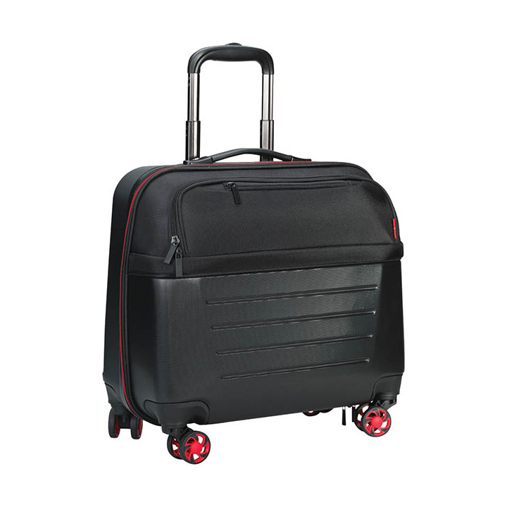 Trolley 4 roues ASB coque noir et rouge . Trolley à 4 roulettes coque ABS SIGN coloris noir & rouge En polyester et coque ABS Intérieur : 1 compartiment central avec bandes élastiques pour maintenir les vêtements et une poche zippée en mesh 1 compartiment avec 1 poche matelassée pour ordinateur portable jusqu'à 15,6", 1 pochette de rangement et une petite poche zippée Extérieur : 1 petite poche zippée à l'avant 4 roues multidirectionnelles Dimensions : 43 x 45 x 21 cm Poids: 2,55 KG