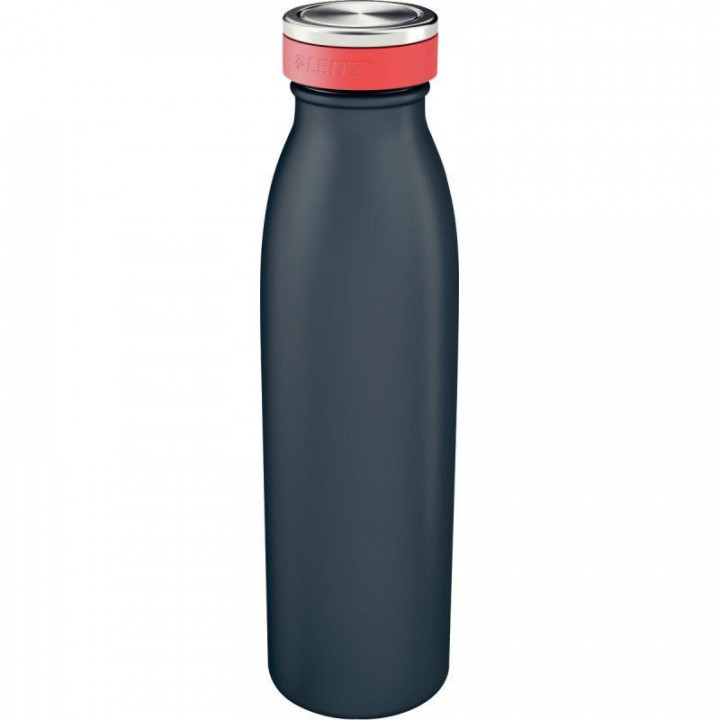 Bouteille isotherme 500ml grise. Bouteille isotherme pour garder vos boissons chaudes pendant 7 heures ou froides pendant 15 heures Conçu pour contenir jusqu'à 500 ml de liquide, convient également aux boissons gazeuses Fabriqué en acier inoxydable avec isolation double paroi Le couvercle se ferme complètement pour éviter les fuites et les débordements Lavable au lave-vaisselle, sans danger pour les aliments et sans BPA Surface antidérapante qui reste froide au toucher lorsqu'elle est utilisée pour des boissons chaudes Accentuation rouge sur le couvercle pour une explosion de couleurs Emballage sans plastique La gamme Leitz Cosy combine confort et qualité premium pour créer un environnement de travail positif et productif.