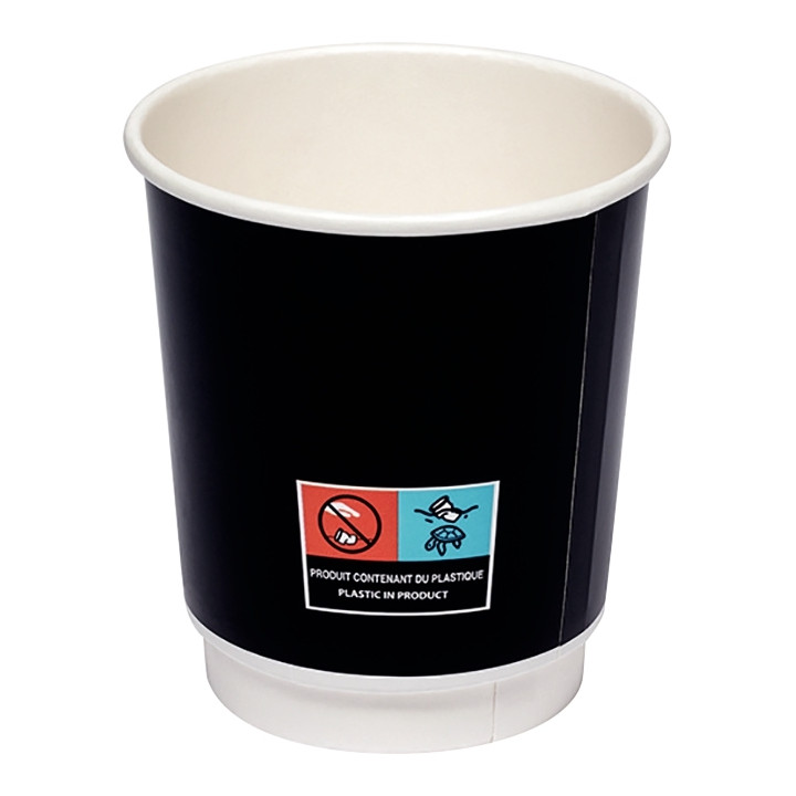 Paquet de 25 gobelets double parois noir 29 cl. En carton renforcé noir de deux couches 29 cl pour boissons chaudes (jusqu'à 100°C). Contenance : 29 cl Diamètre : 80 mm 100 % Biodégradable, compostable et recyclable