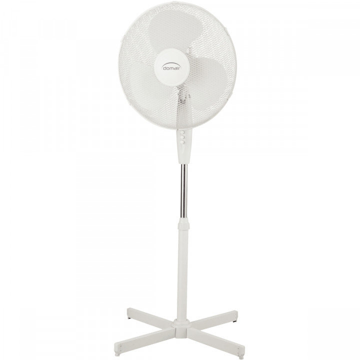 Ventilateur sur pied blanc diamètre 40cm 45W. - Puissance : 45 W - Diamètre : 40 cm - Débit d'air : 70.98 m3/min - 3 vitesses de ventilation - Oscillation à 90° - Grille inclinable à 25° - Ajustable en hauteur - Coloris blanc - Dimensions (LxHxP) : 43x120/125x40cm - Poids : 2.45kg - Garantie 2 ans