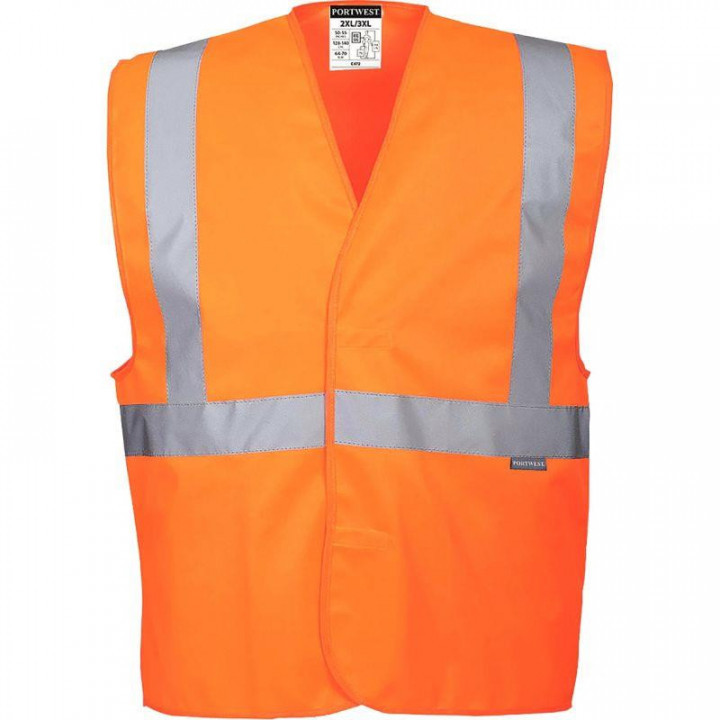 Gilet haute visibilité orange taille L/XL. 100% polyester. 120g/m2. Fermeture par scratchs. Bandes rétro-réfléchissantes : bandes cousues microbilles 5cm. Visibilité : bandes cousues : 2 bretelles + 1 ceinture.
