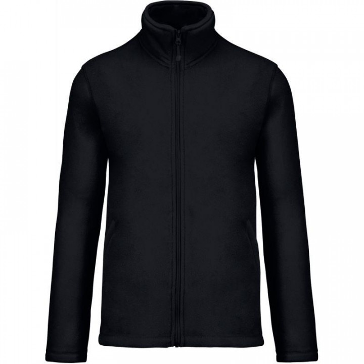 Veste micro polaire noire taille S. Traitement antiboulochage : maintien aspect lisse et doux dans le temps. Maintien de la chaleur. Résistant et facile d'entretien. 100% polyester - 300g/m2. Fermeture zippée. 2 poches zippées sur le côté. Lavage à 40°.